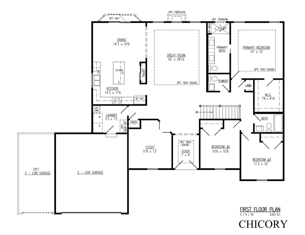 Chicory The Chicory – Spacious dining and laundry rooms, more private kitchen. Style: Ranch Area: 2,023 square feet Bedrooms: 3 Bathrooms: 2 Price: Contact sales at 314-965-9160